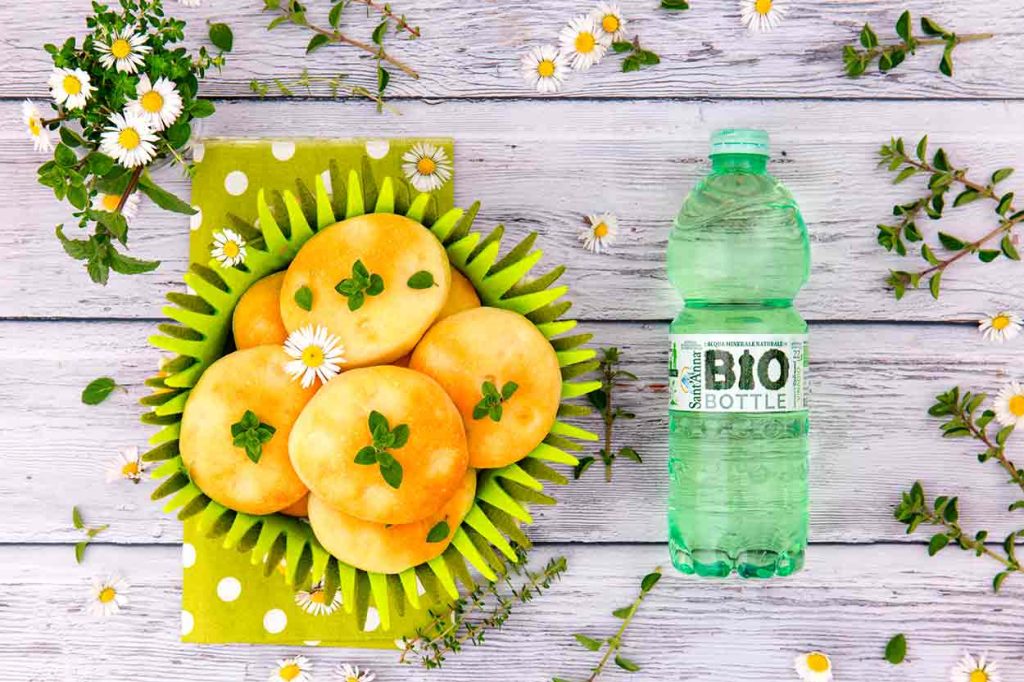 In questa ricetta Acqua Sant’Anna Bio Bottle da 0,5l non è solo in tavola, ma diventa parte dell’impasto: leggera, pura, perfetta per dare vita a focaccine soffici e ben lievitate.