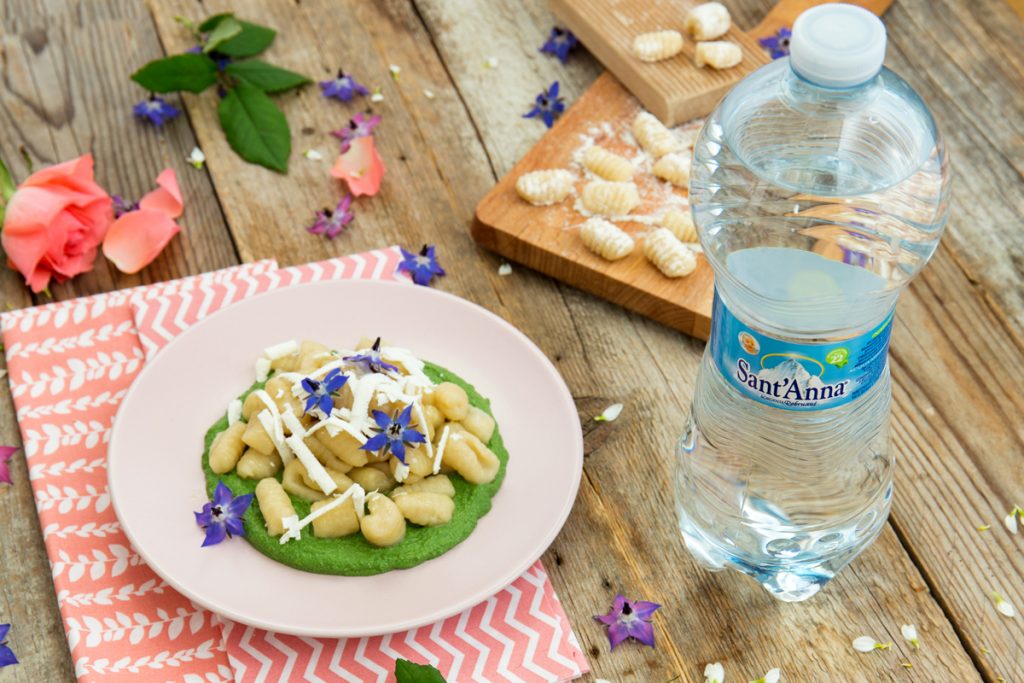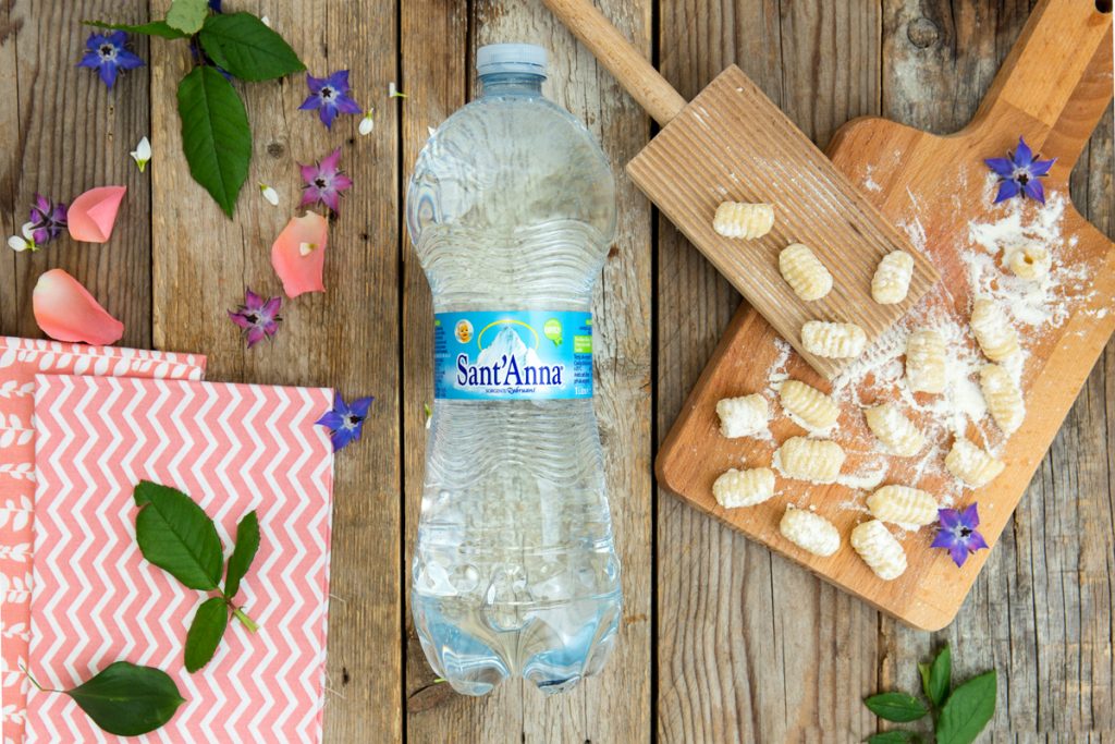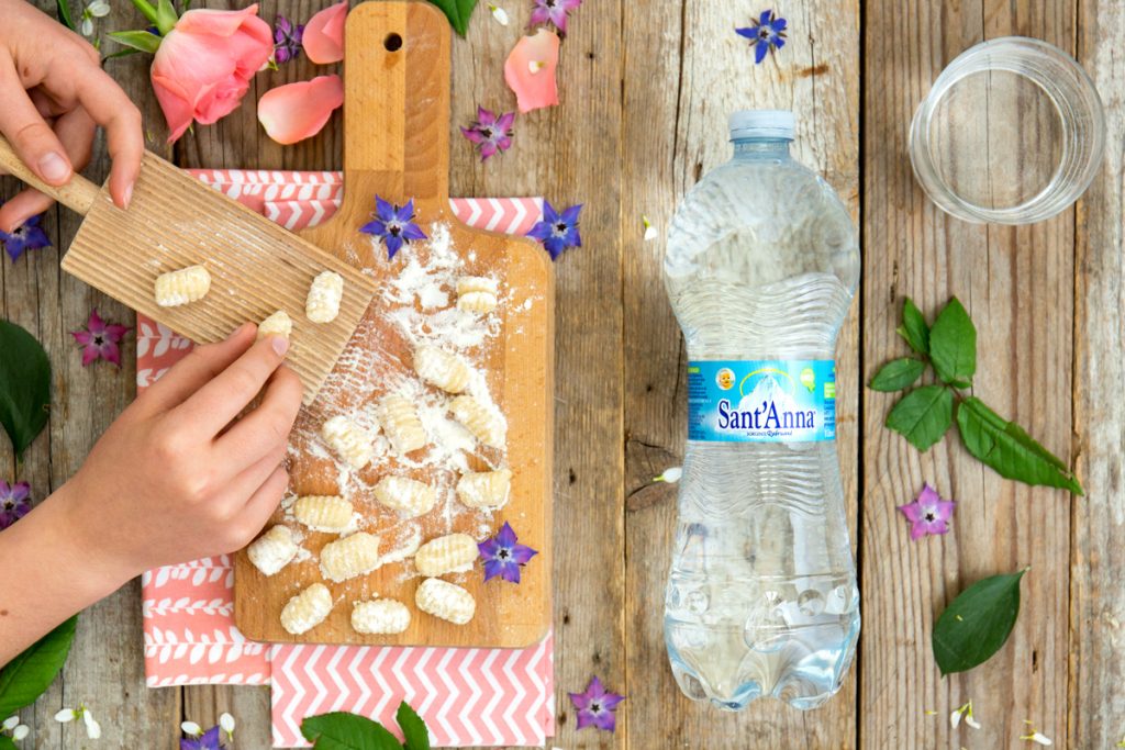 Nell’impastare gli gnocchetti fatti con Acqua Sant’Anna abbiamo parlato a lungo di natura e di territorio. Caterina ha dimostrato molto interesse per la discussione perché a scuola sta studiando proprio questi argomenti: è rimasta colpita dal fatto che l’acqua che stavamo utilizzando per cucinare fosse una delle più leggere al mondo e sgorgasse da una fonte alpina a 2000 metri di altitudine!