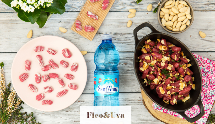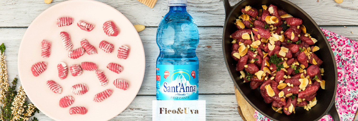 Acqua Sant’Anna frizzante, ad esempio, è perfetta per accompagnare i nostri gnocchi alla barbabietola e stuzzicare il palato.