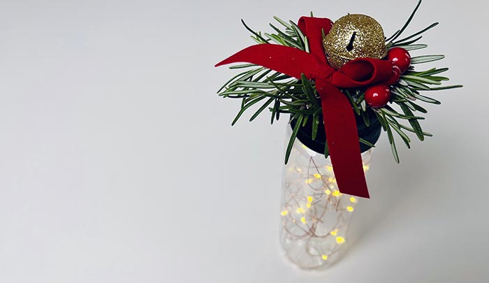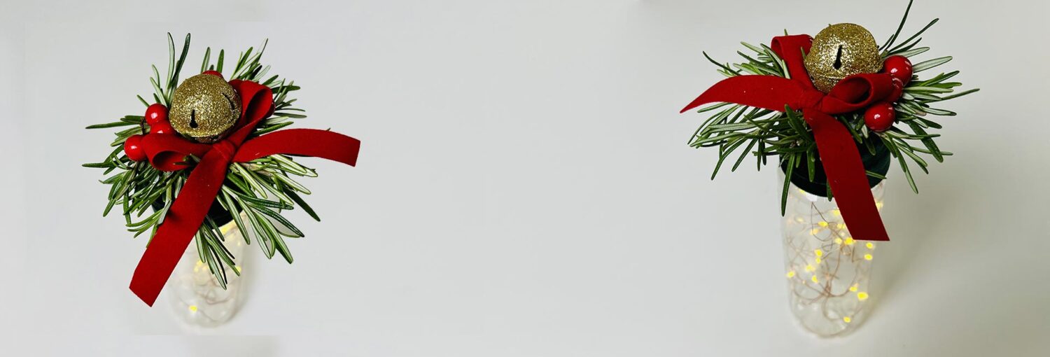 La parte ‘tecnica’ del tutorial è terminata, ora date sfogo alla vostra fantasia e decorate la lanterna! Ma qualche consiglio è sempre gradito no? Quindi eccolo: iniziate con i rametti di rosmarino a fare una base, proseguite con qualche bacca.