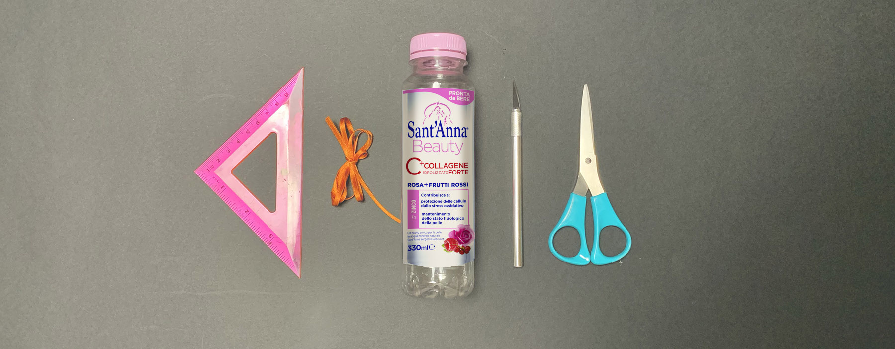 COME IMPACCHETTARE DEI PICCOLI OGGETTI? CON UNA MINI SCATOLINA TRASPARENTE! PER OTTENERLA PROCURATEVI UNA BOTTIGLIA DI SANT’ANNA BEAUTY COLLAGENE ROSA + FRUTTI ROSSI DA 330 ML.