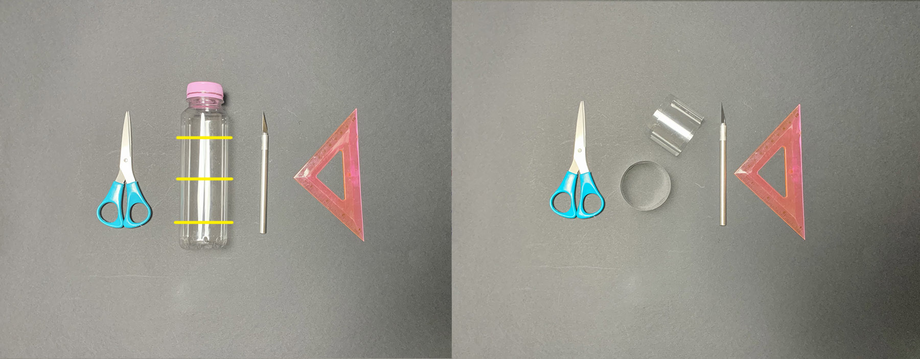 Eliminate l’etichetta e ricavate due sezioni di bottiglia alte 4,5 cm.