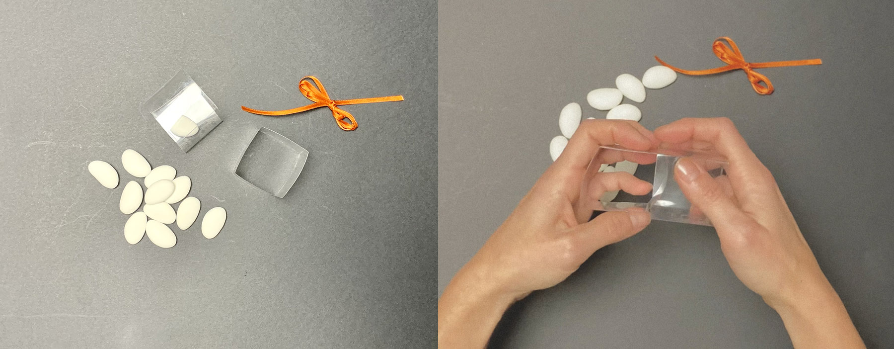 Piccoli oggetti, caramelle, confetti, sono sempre un problema da impacchettare, hanno bisogno di confezioni piccole, pratiche e che magari ci permettano di vedere il contenuto all’interno, che è sempre molto carino e colorato. Abbiamo realizzato per voi un tutorial ad hoc per aiutarvi nella creazione di questi ‘contenitori’.